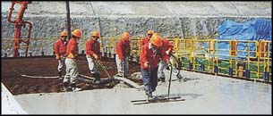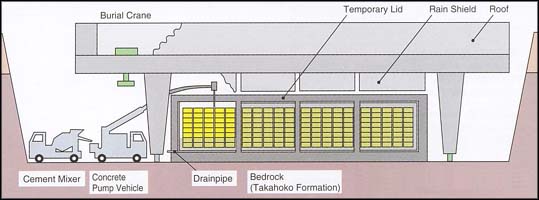 A reinforced concrete lid like a monolithic rock is placed atop the disposal facility. |